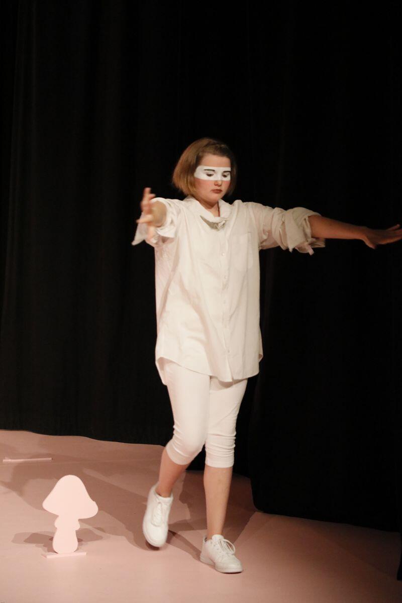 Alice y traverse un univers absurde et poétique où le rêve et la réalité s’entremêlent.
